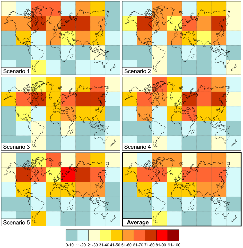 Once the model accurately produces results for the historical dataset, it is then used to test a variety of warming trends going into the future. In current scientific research, a model is likely to be run dozens or hundreds of times with very small variations in all the inputs and some degree of randomness inbuilt. Every result is then collected together and compared, producing a map that shows the most likely result for a given warming trend, usually with a 95% confidence interval.