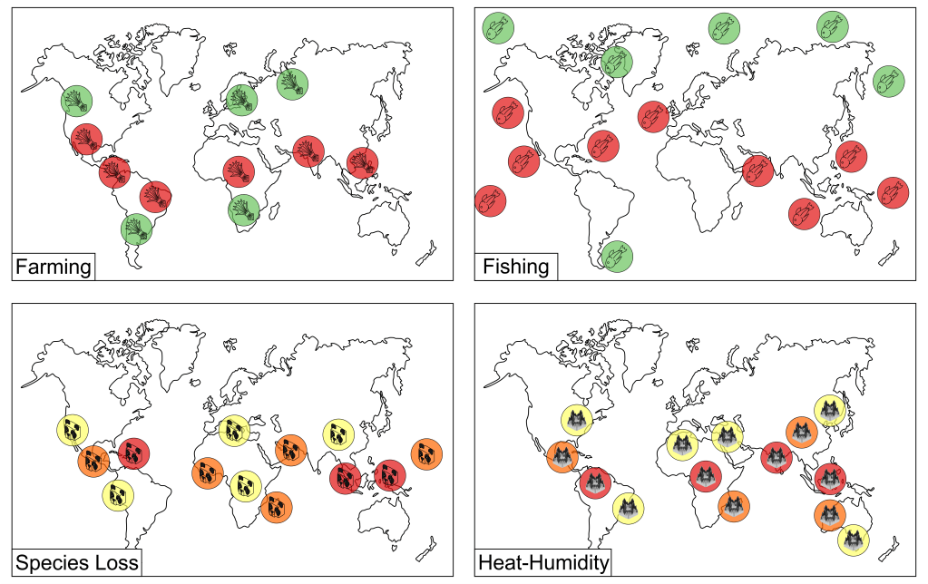 With increasing levels of warming, there are increased chances of compound events, where two or more of the individual impacts combine. This could be land degradation and species loss, making it next to impossible for some regions to produce enough food for the population. The more compound events occur, the worse the impacts.