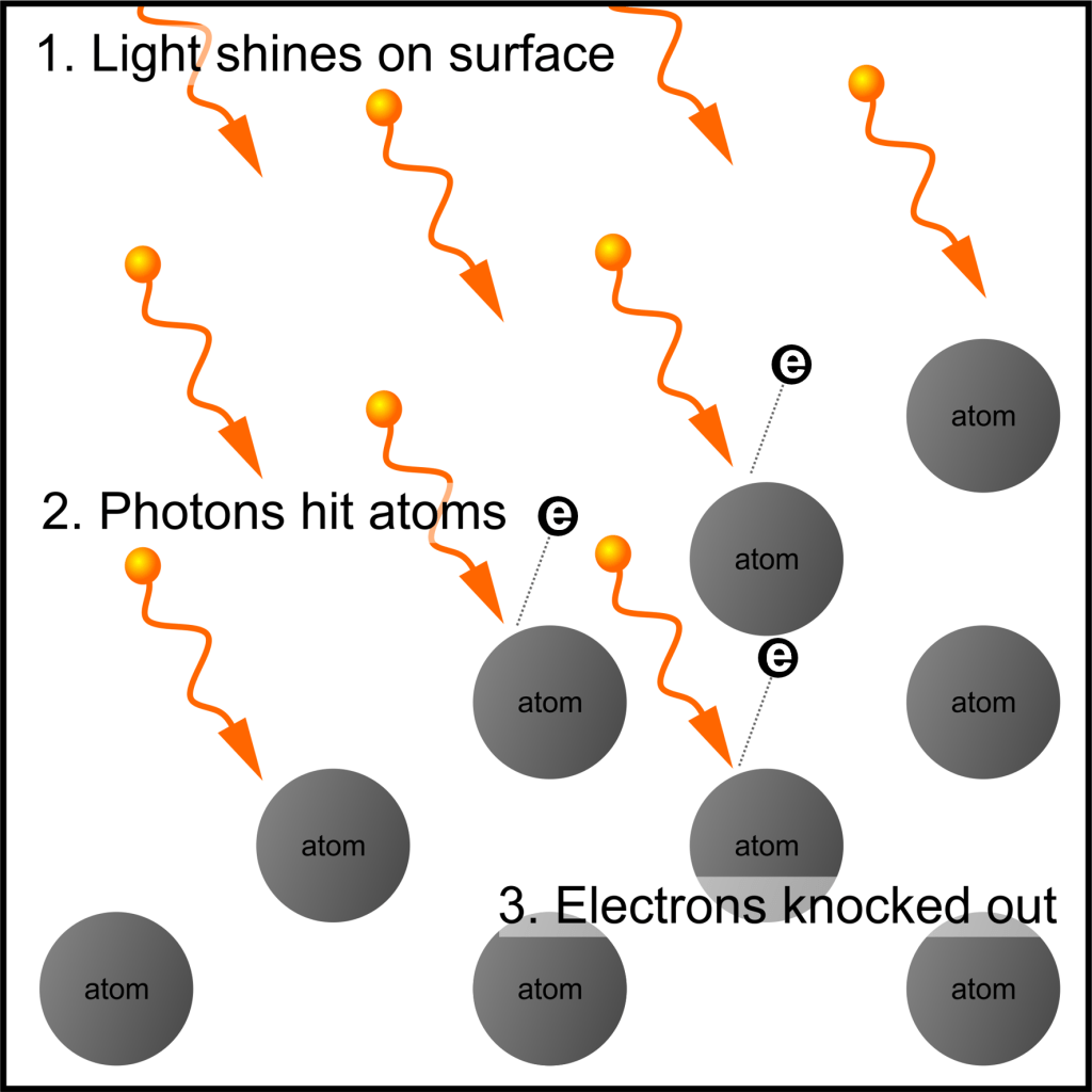 However, occasionally, the photon will hit an electron – one of the three things that make up atoms – and knock it out of the atom. This doesn’t happen very often, because electrons are always moving around. However, in the context of billions of atoms that make up any given object and the millions of photons that are hitting an object every minute, a lot of electrons can be knocked out of position.